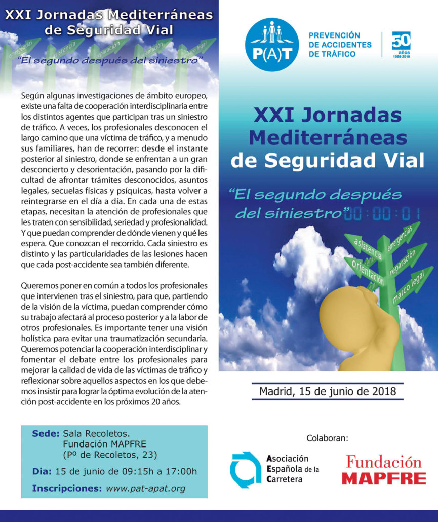 El proper 15 de juny tindran lloc a Madrid les XXI Jornades Mediterrànies de Seguretat Viària, organitzades per l’Associació Prevenció d’Accidents de Trànsit, P(A)T, amb la col·laboració de l‘Associació Espanyola de la Carretera (AEC).