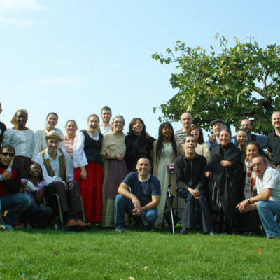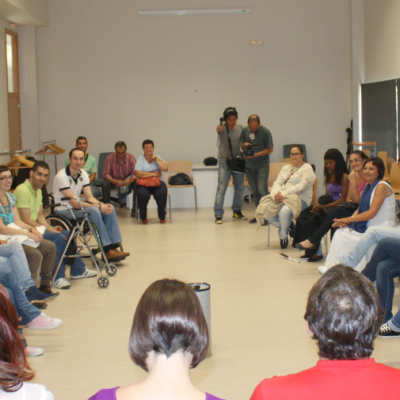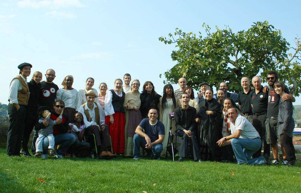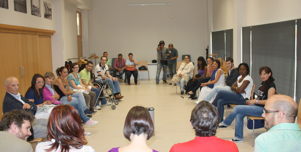 El siguiente paso fue seleccionar a las/os participantes. Y aquí el proyecto daba un salto cualitativo, pues quisimos implicar (con la colaboración de distintas entidades sociales de la ciudad, como la Asociación contra el Cáncer, el Comité Antisida, AIXIÑA, asociaciones de inmigrantes, pacientes del Centro Psiquiátrico Cabaleiro Goás, de la Unidad de Violencia de Género, del grupo de Adultos Municipal, del Centro de menores con medidas judiciales TRAMA…) a personas con unas particularidades especiales, en su mayor parte en situaciones de riesgo de inclusión social. Así, junto a nuestro voluntariado, participarían de las acciones teatrales, inmigrantes, víctimas de malos tratos, víctimas de accidentes de tráfico, invidentes… hasta completar un primer grupo de 18 personas. Para la parte más técnica, contamos con la colaboración de dos entidades de lo más solventes: el grupo de teatro Sarabela y el grupo musical O Sonoro Maxín, dos referentes sin duda en el mundo de la escena y la música gallegas.