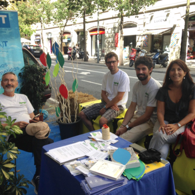 La asociación P(A)T y CatalunyaCamina estuvimos en la calle Casanova,91 de Barcelona compartiendo impresiones de como andar en la ciudad de forma segura y saludable y calculando la huella ecológica en los desplazamientos cotidianos.